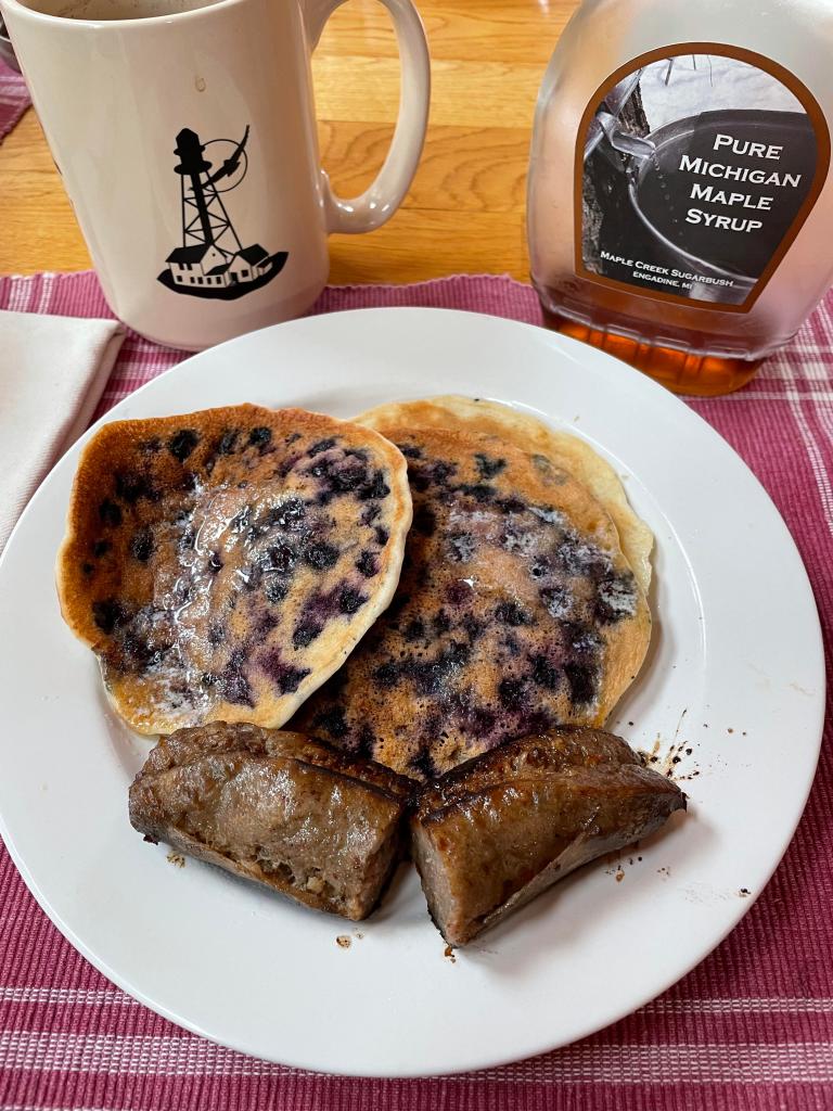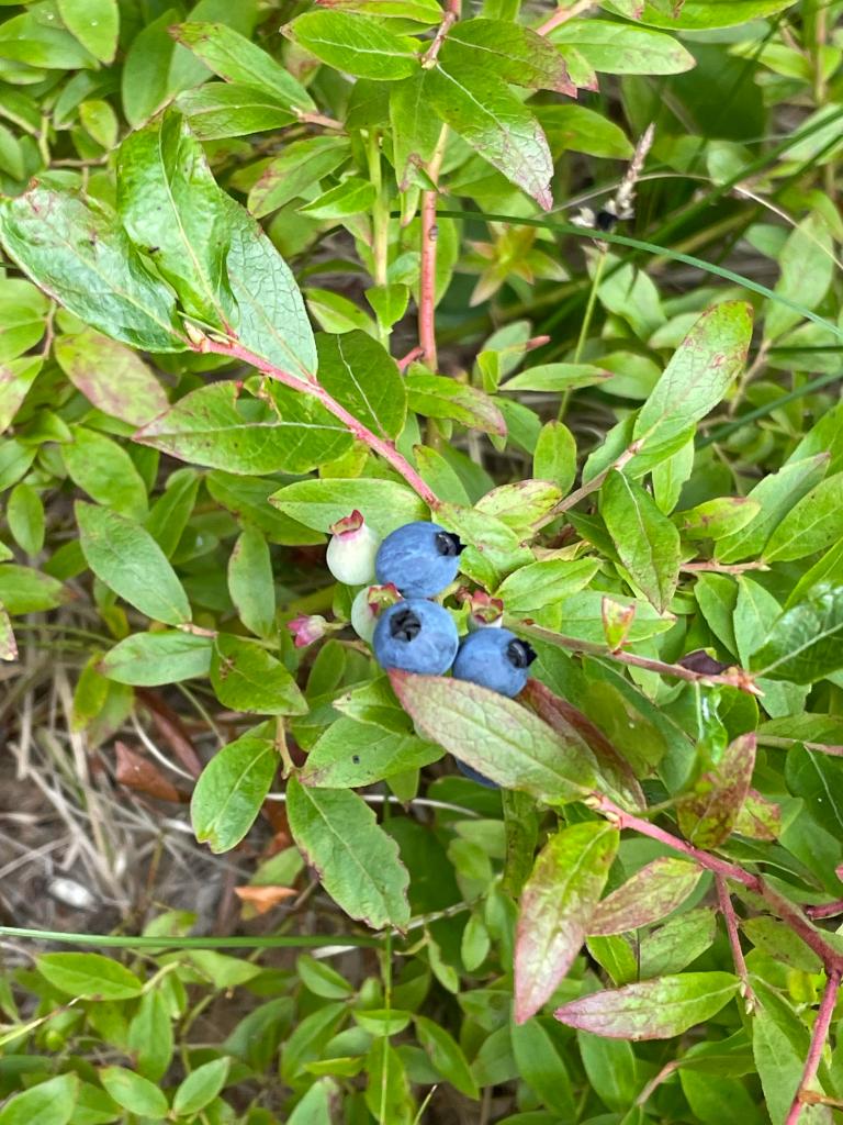 Within feet of the cabin we are able to pick blueberries. The other day Susan picked several cups of them that went into making pancakes. For the past four days they have been part of breakfast.