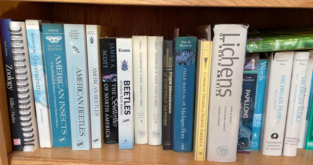 Whether I am at home or at the cabin I am never sure what books I will be using or reading. Since it is summer I am always pulling out a but or two on insects or plants.