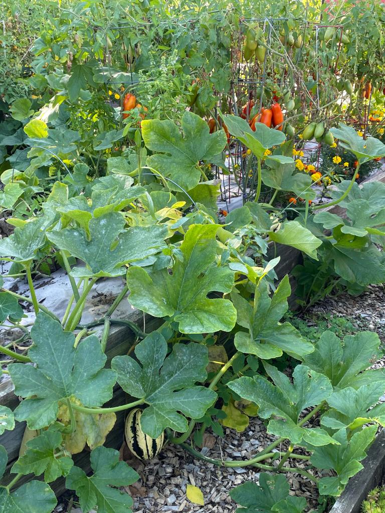 The above photo shows some of the Roma tomatoes that will dominated the canning scene, as well as a few of the delicata squash that will spend some time in the basement before making it to the dinner table, along with spaghetti squash and acorn squash.