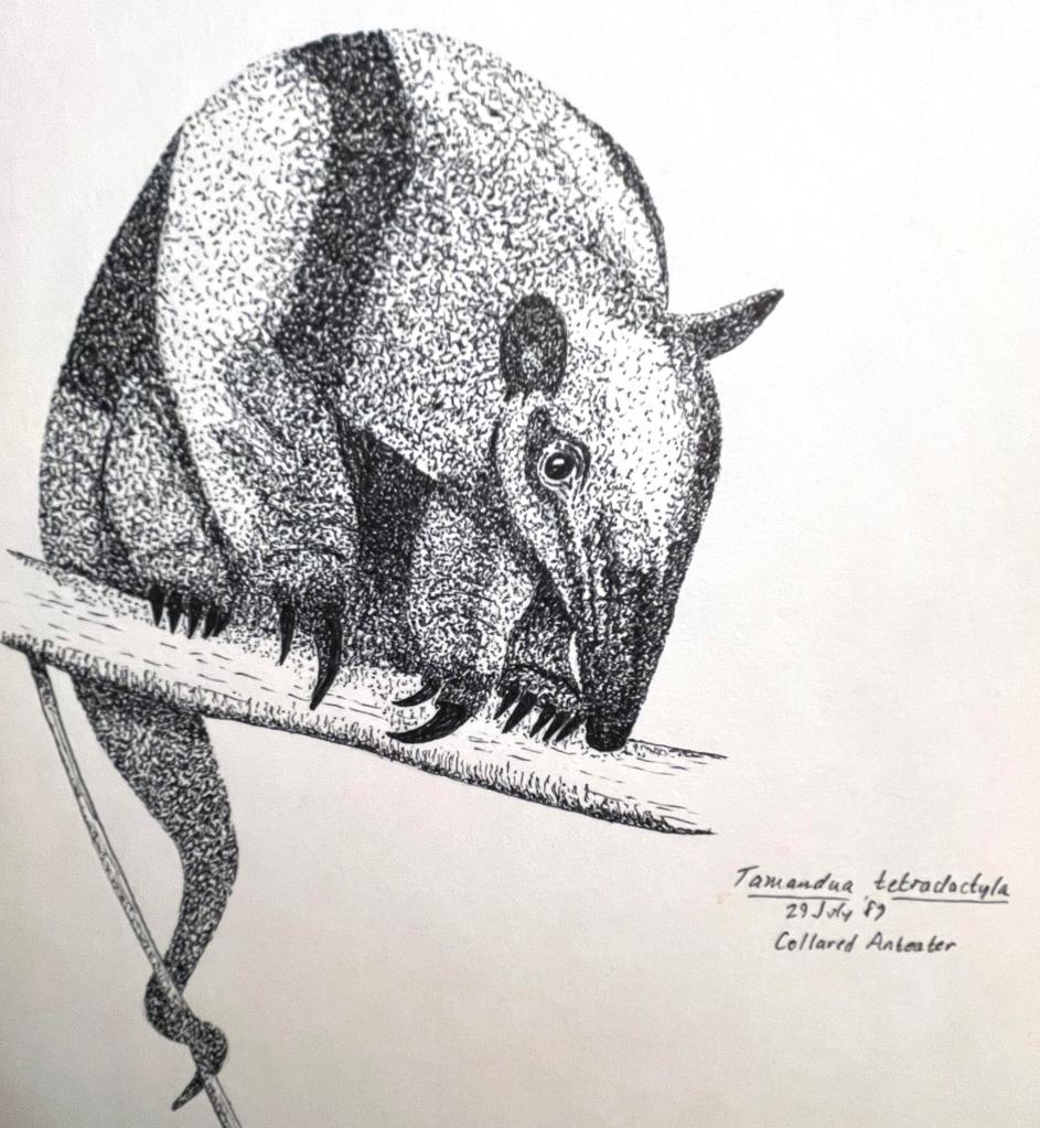 On another occasion, along the road away from the ruins we found one of the most interesting animals I can remember encountering near Palenque. Of course there was the time I had spooked an adult tapir, allowing me a brief view as it disappeared into the forest before I could show it to anybody. I was surprised at how agile and fast it was. And there were the numerous times that I encountered fer-de-lance, a venomous snake with a nasty reputation. But better than all of those was discovering a tamandua along the main road heading to Palenque. This ws a beautiful arboreal anteater that I had not seen before (even in a zoo) or since.