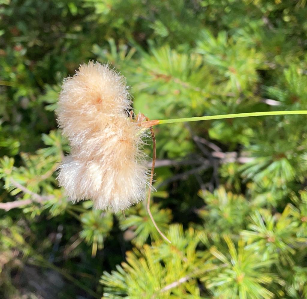 Walking from the buildings towards Lake Superior we crossed through the dune-swales, alternating dry sandy ridges separated by low set swales. This is the area that orchids are easily found. By easily I mean that we found many hundreds of these small orchids. Mixed together were nodding, hooded and case’s lady’s-tresses. They were most prevalent in the sides of the swales below the driest areas of the dunes. But we also found many other plants like tawny cotton-grass (Eriophorum virginicum) and a similar plant cotton deergrass (Trichophorum alpinum).