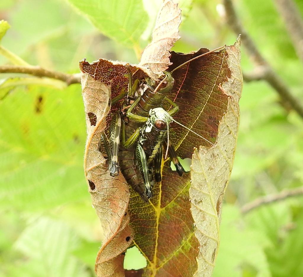 Years ago we were pursuing to differently colored grasshoppers, trying to figure out what they were. Finally, we got our answer when we found two mating in a similar position to those above. That was the first time we were able to find and identify Northern wingless grasshoppers.