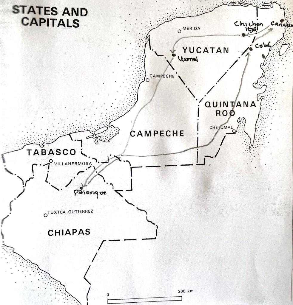 While taking a walk the other day I found the above book in a “Free Little Library” that we walk past on a daily basis. Sometimes we leave a book, or like the above take one. This reminded me of a trip that I lead in the Yucatan for the Michigan Audubon Society (MAS) in the early 1990s. I had arranged a tour with the trip coordinator for the MAS that would combine and expand two tours that I had offered. It would be two weeks visiting some of the largest Mayan archeological sites – Chichen Itzá, Uxmal, Palenque and Cobá, highlighting a tremendous number of Mexican birds.