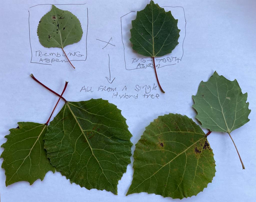 As we walked along a loop-trail we found both Big-tooth aspen and Trembling, as well as only the second example of a hybrid between the two.