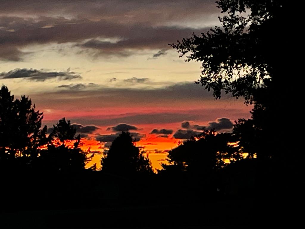 Recently, we were visiting Mike and Deb in Petosky. They have several apple and pear trees. One evening, after a walk with a beautiful sunset Susan picked some apples and pears that we brought home. The next morning, one of the apples became part of breakfast.