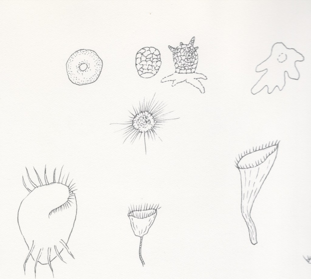 The art challenge for yesterday (I’ll always be a day behind) was “microscopic.” I went through old sketchbooks (used for teaching, or just for the sake of drawing) and pulled out a bunch of illustrations of protists.