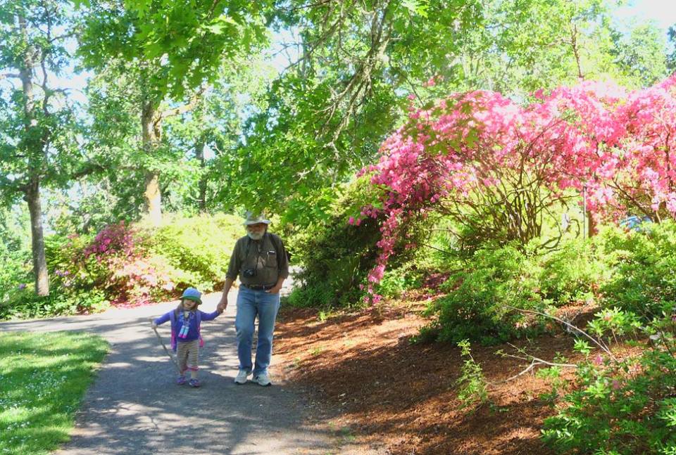 A final “colorful” image is a photo that Susan took at Hendrick’s Park in Eugene, Oregon of Milly walking with me. We were having a picnic and a hike. She was so excited. She got her back pack, hat and binoculars. Then when we got out of the car she found the perfect walking-stick and off we headed. Every time I see this photo I can help but smile.
