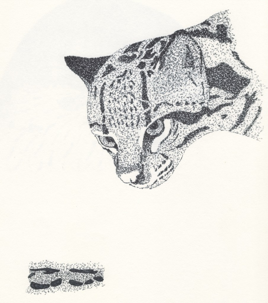 The art challenge for today is spotted. The above sketch was done at the Belle Isle Aquarium back in the early 1990s. The rest were part of a project illustrating all of the “interesting” animals of Mexico.