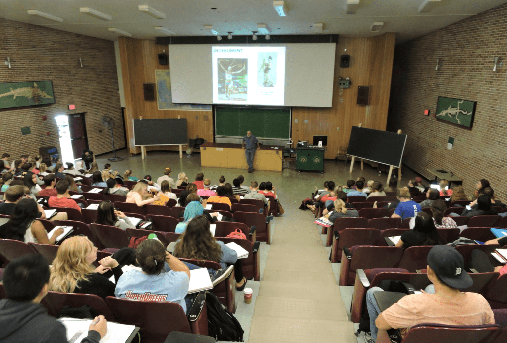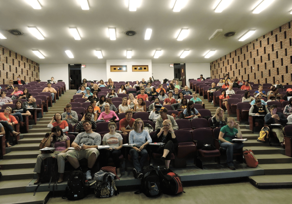 In the left photo I am in the center at the front. The right is my view of the room. This was before class when almost every seat was full.