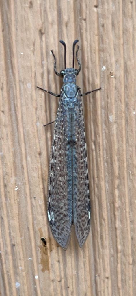 The photo above is an antlion. These wonderful, and somewhat delicate creatures are common at our cabin, as well as almost everywhere we go for hikes. Most people do not recognize their larvae or the larval homes – antlion pits. Watch for depressions in the sand about 50-75 mm across. Below the center bottom of the depression, at the bottom of the pit there will be a young antlion. These larvae are voracious predators of other insects that travel across the sand and slide down the sides of their pits, especially ants – thus their name.