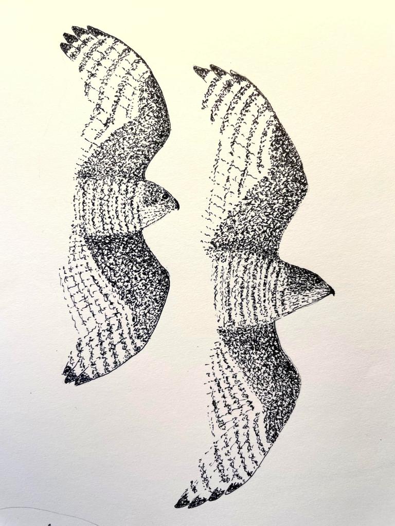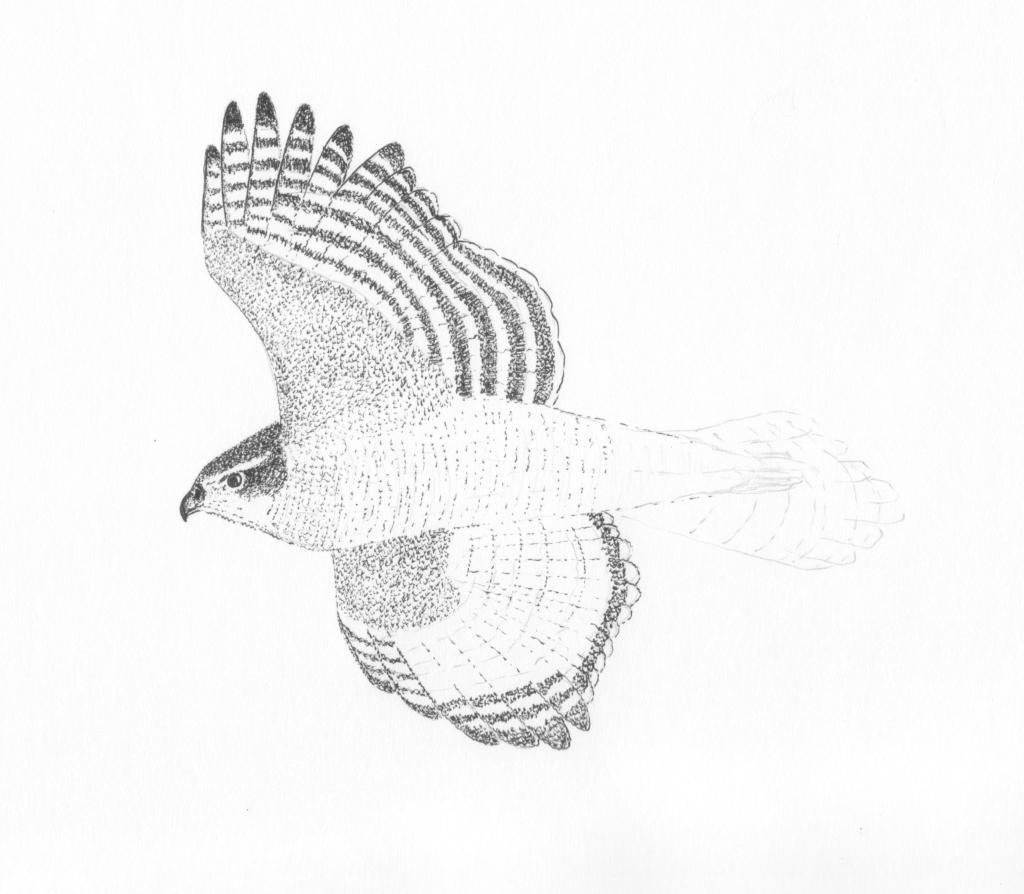 With the Accipiters, the upper one is a Northern Goshawk, lower left is a Sharp-shinned Hawk, lower right is a Cooper’s Hawk – all to scale.