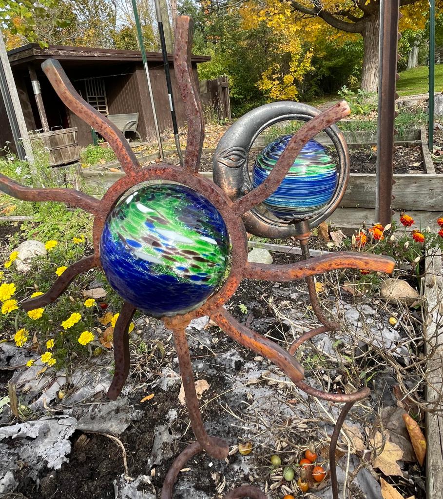 The sun and the moon, each with their own glass planet have been put in a spot where we can see them better from our desks.