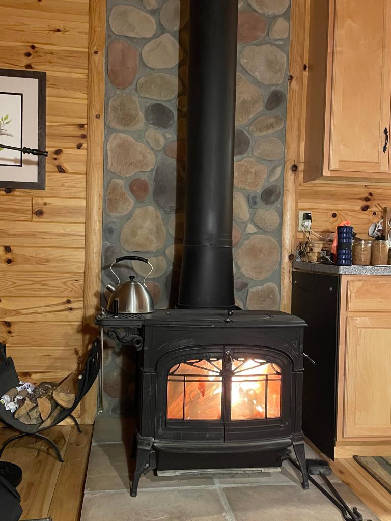 ,As the wind shifted and clouds moved in, the temperature started to drop. This morning it was 43F when I got up. So, as is our tradition when it gets cold, I lit our first fire of the week.