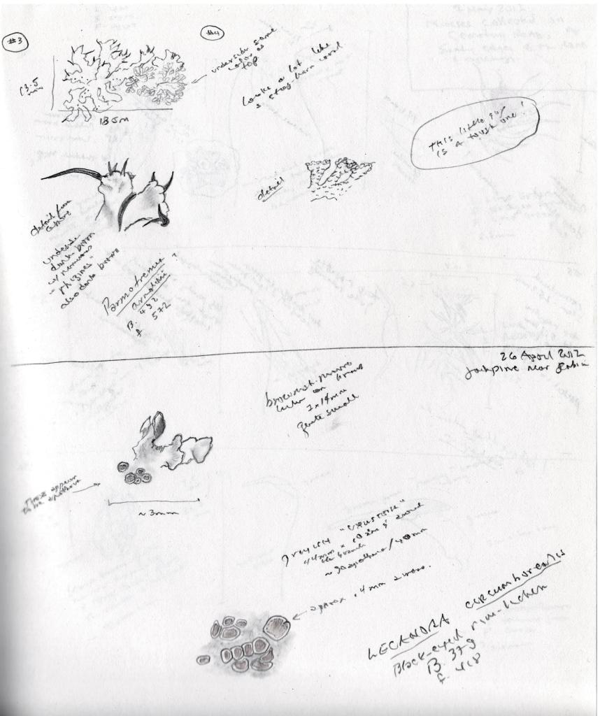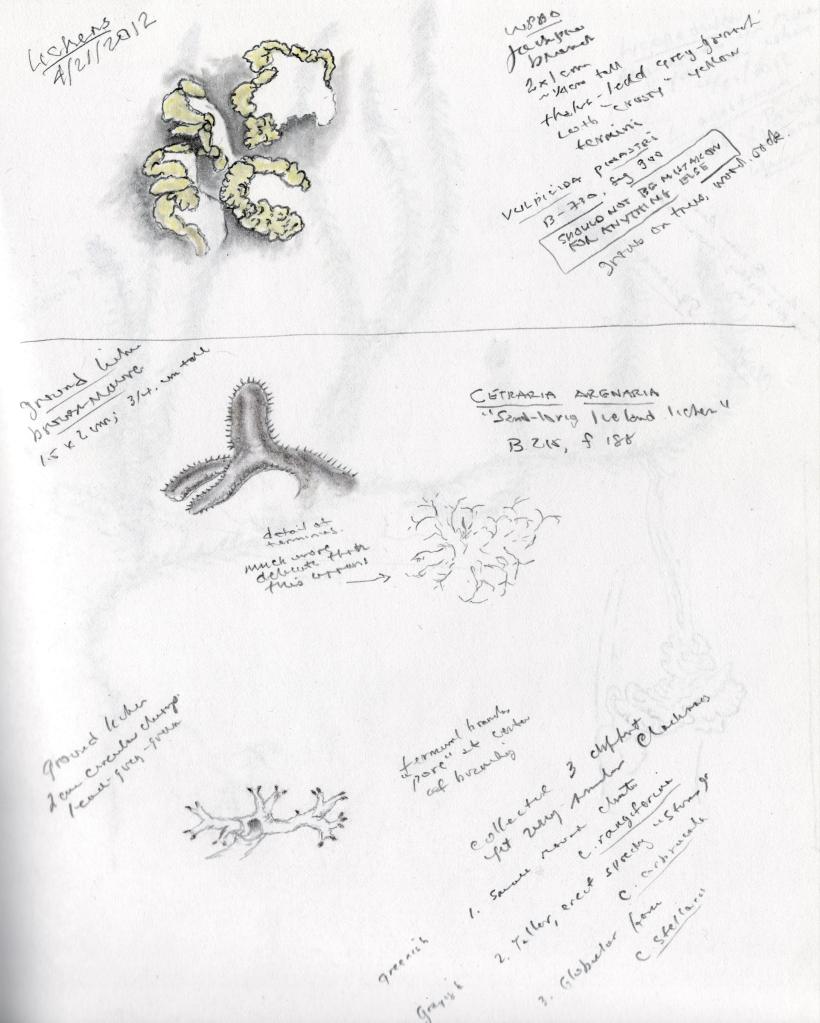 In trying to learn what lichens occurred on our property I started keep an illustrated natural history journal. It started with lichens, then went on to mosses and finally willows that occurred nearby.