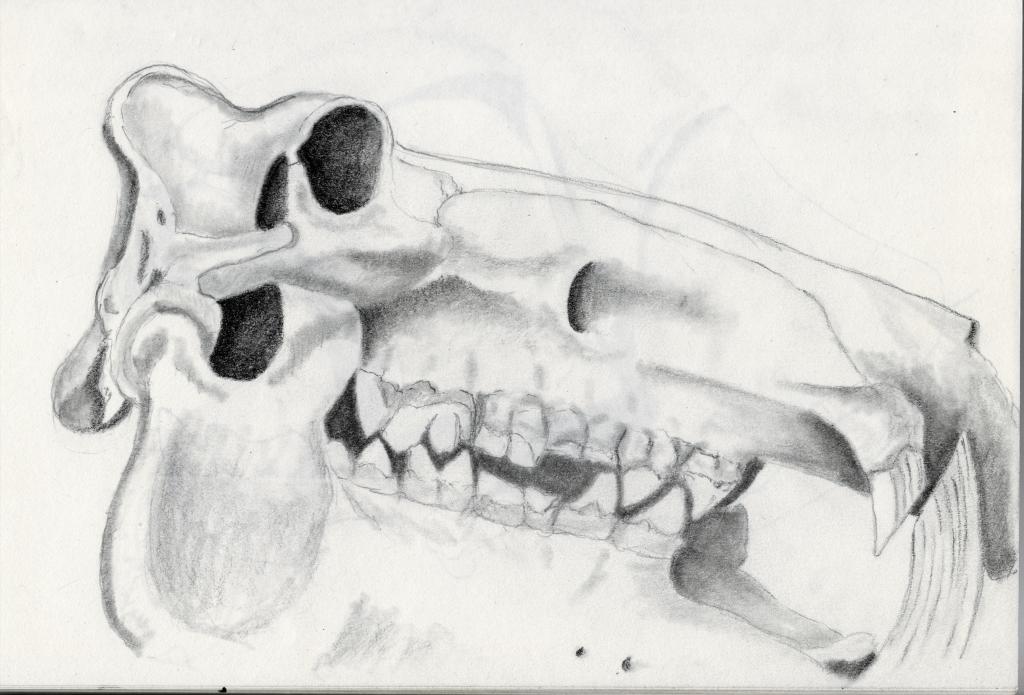 I have always liked drawing bones, especially skulls. This hippo is a full journal page and could have been a bit smalled.