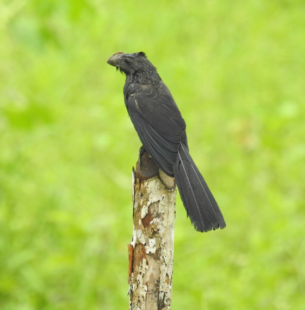 Groove-billed Ani on the left. Greater Ani on the right.