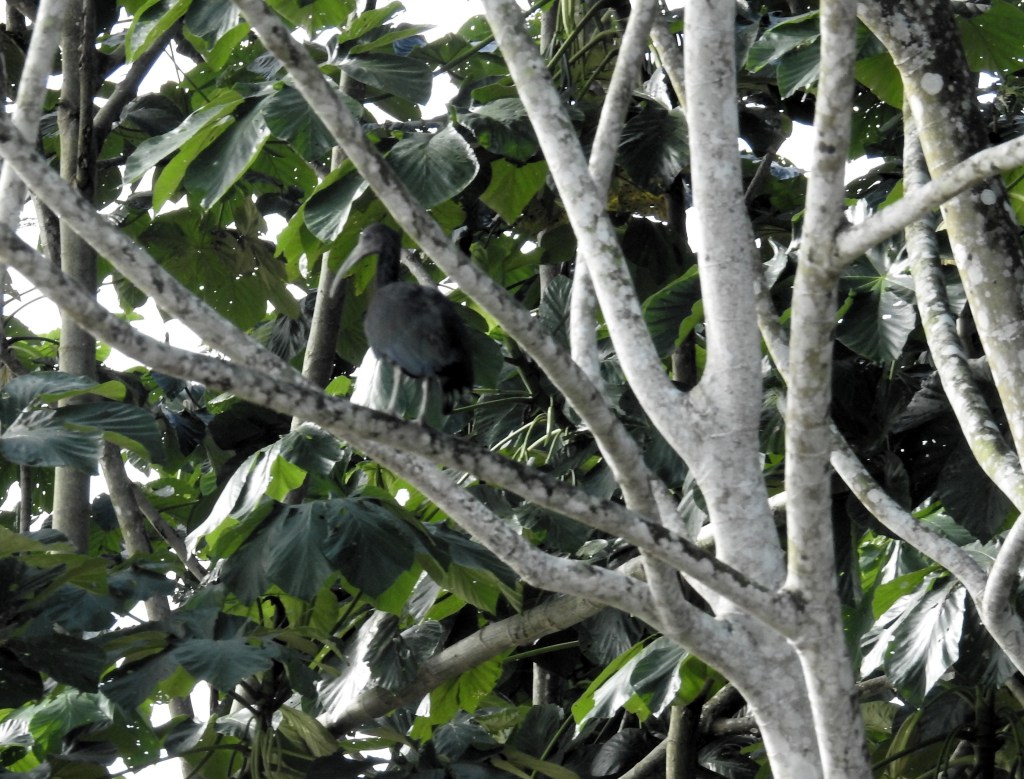 Green Ibis photographed from a motorized canoe.
