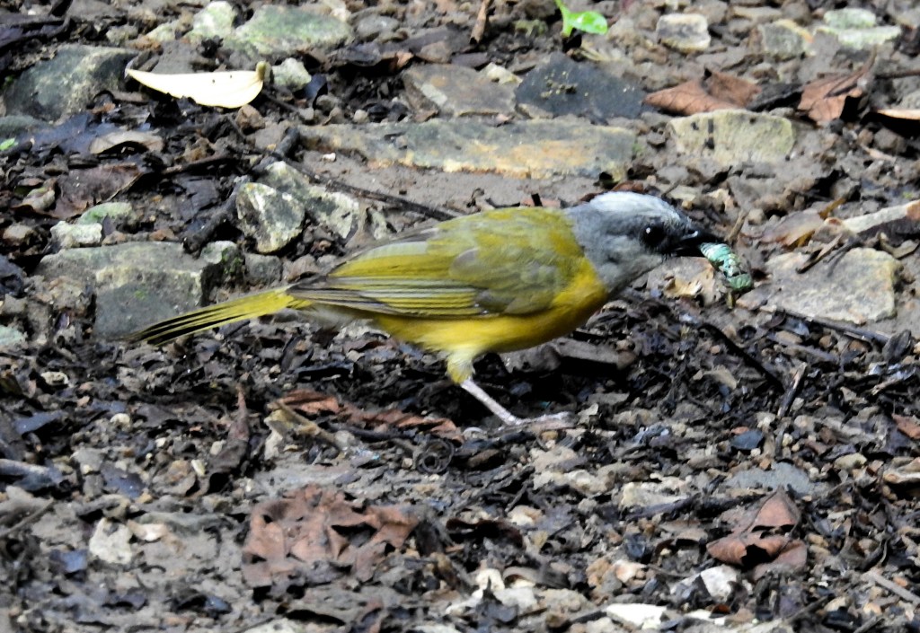 Gray-headed Tanager eating an emerald cicada.