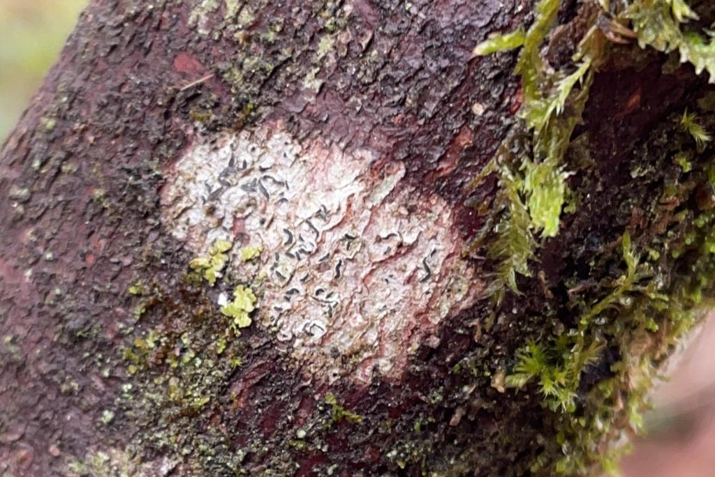 Ramalina farinacea, on the left and Graphis scripta on the right.