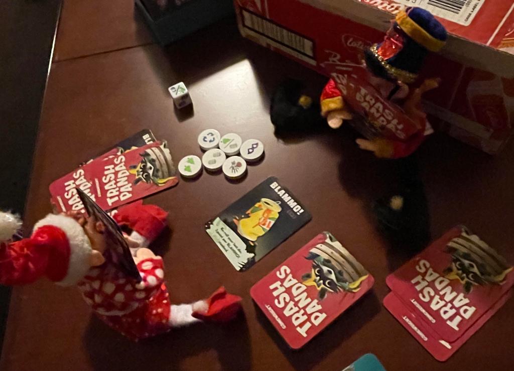 The rascally elves got up in the middle of the night to play Trash Panda, a really fun little game.