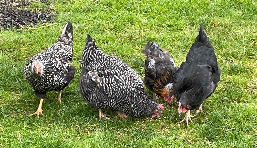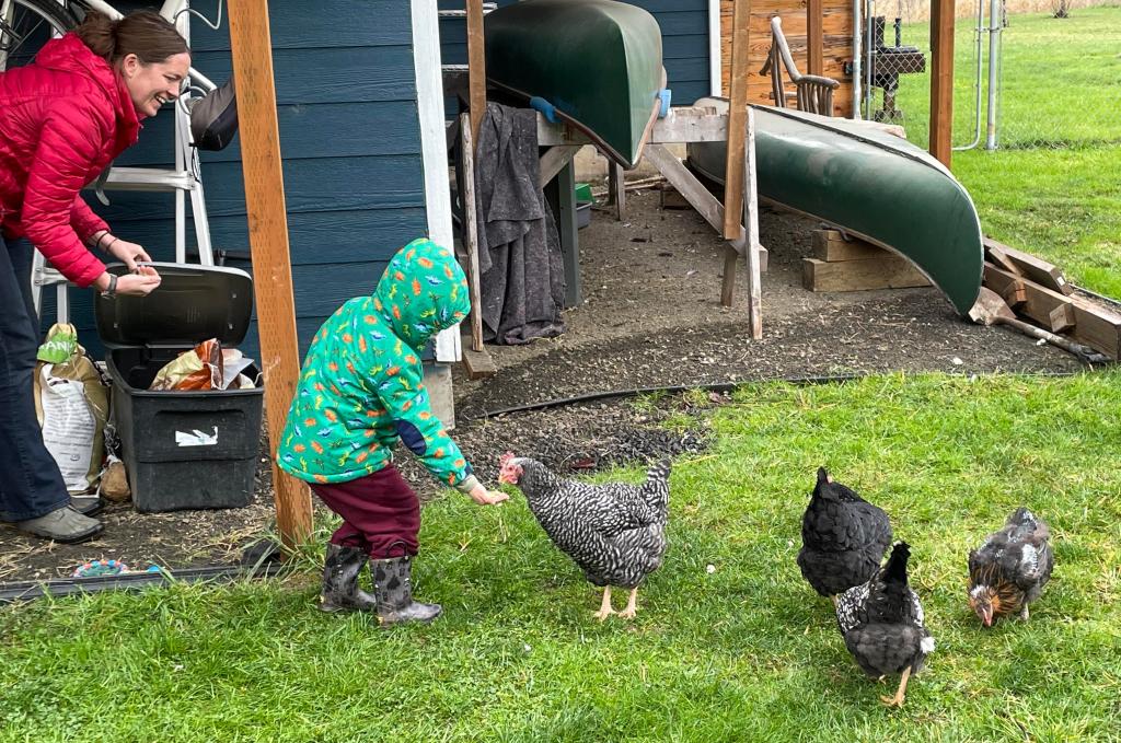 Today we went to Corvallis to visit our friends Jamie and Taylor. Jamie, who was on the Biology faculty at EMU with me, studies Red Crossbills. Taylor studies sharks. And yes, they have chickens.