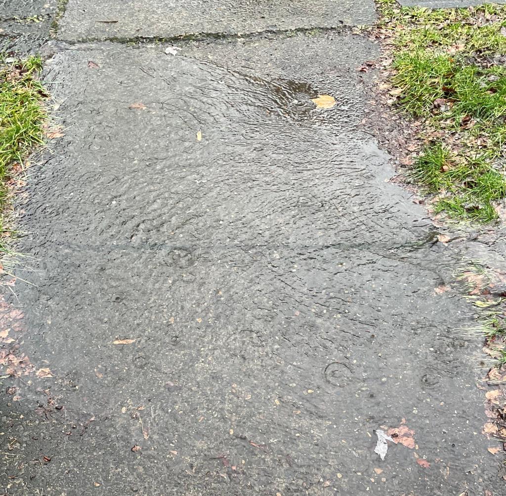 It’s been a steady rain all day. Even the sidewalks are flooded.