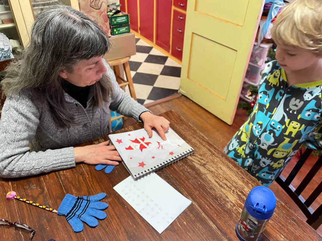 After breakfast it was time for a “pre-Christmas” present from Grandma and Papa – sticker puzzle books. Both Milly and Oscar had a lot of fun with these.