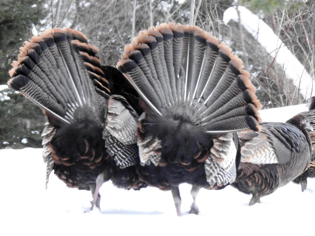 The last new bird of the day was in a group of seven Ruffed Grouse in a crab-apple tree, along with three Pine Grosbeaks.