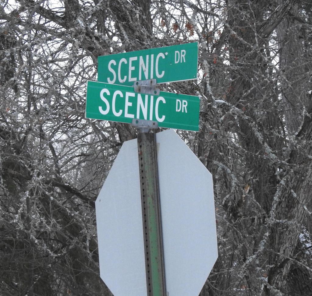 The corner of Scenic Drive and Scenic Drive? At Dunbar Woods. Not much happening there as the feeders were mostly down.