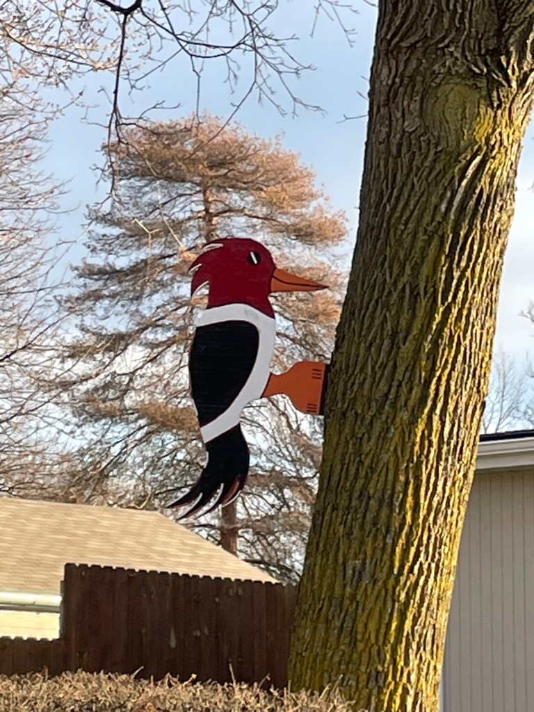 Here’s a bird from the neighborhood. AT first I thought it was Woody the Woodpecker, then realized it was probably a Red-headed Woodpecker.