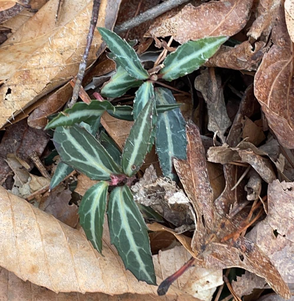 A surprise find was several little patches of Cranefly orchids (Tipularia discolor), which like Puttyroot, spend the winter as single leaves. So, this is our second orchid find of the year.