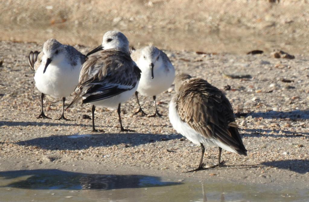 Searching through the abundant Sanderlings we were lucky to find three Western Sandpipers.
