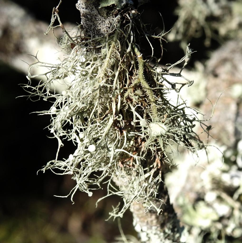There were three different Usnea lichens, including Usnea strigosa on the left. There were several Ramalina and Parmatrema as well as some smaller species. Instead of spending the time necessary to identify everything I grabbed some quick photos and tried to keep up with the group of bird-watchers we were with.