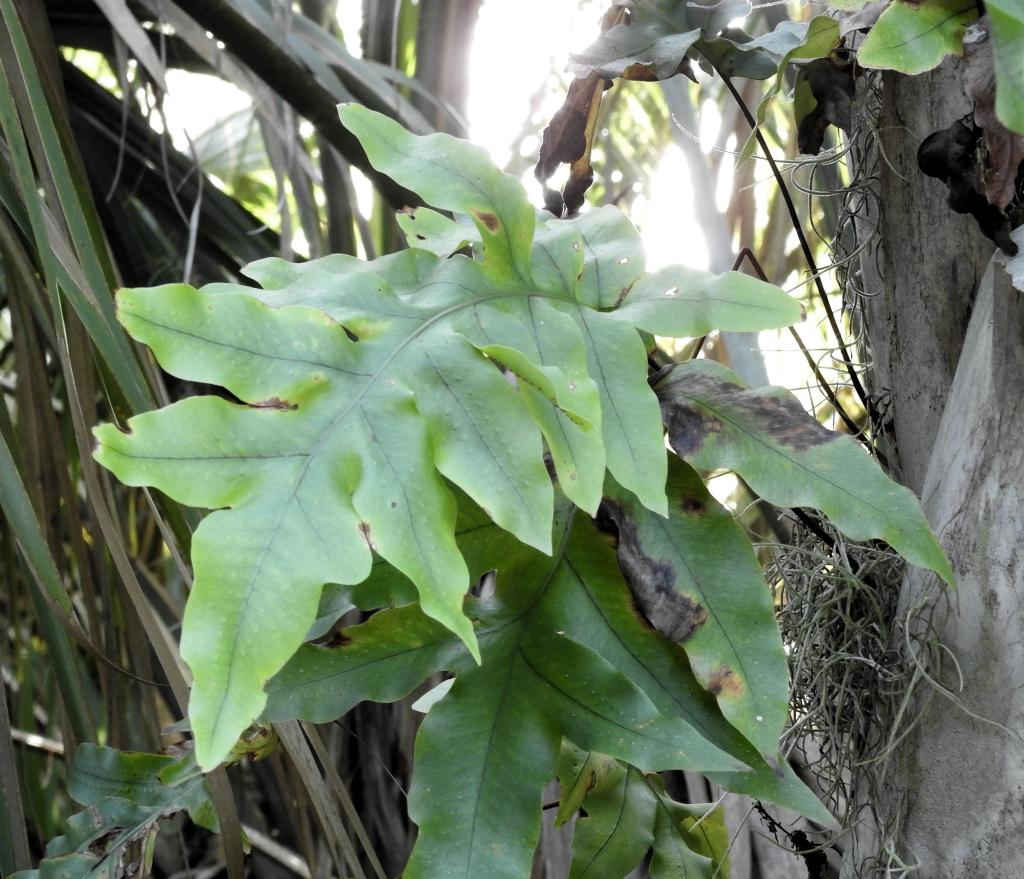 Here’s the top and bottom photos of Golden polypody an epiphytic fern that grows of the sides of Palms.