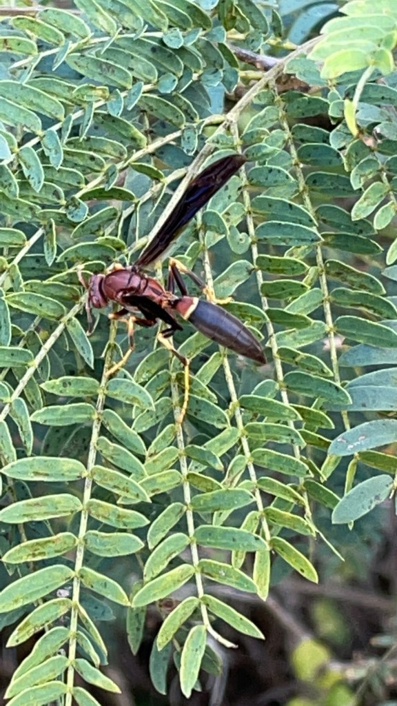 I always stop for Polistes wasps. This is Polistes annularis, an attractive and docile wasp.