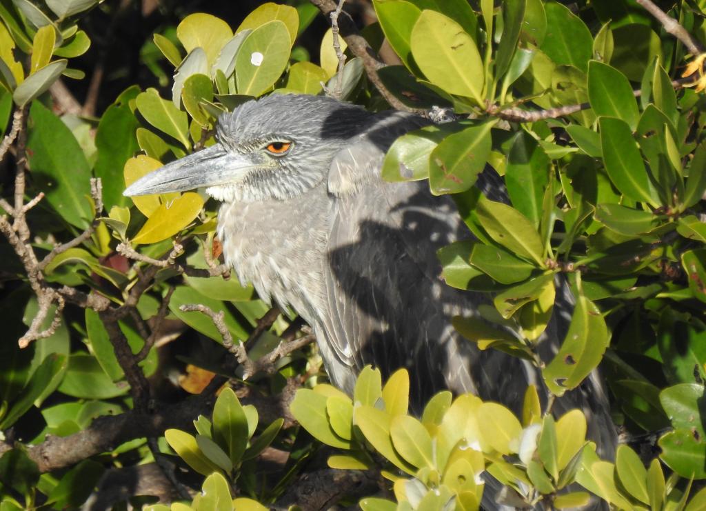 Here’s a young Yellow-crowned Night-Heron that we found earlier in the day tucked into the mangroves.