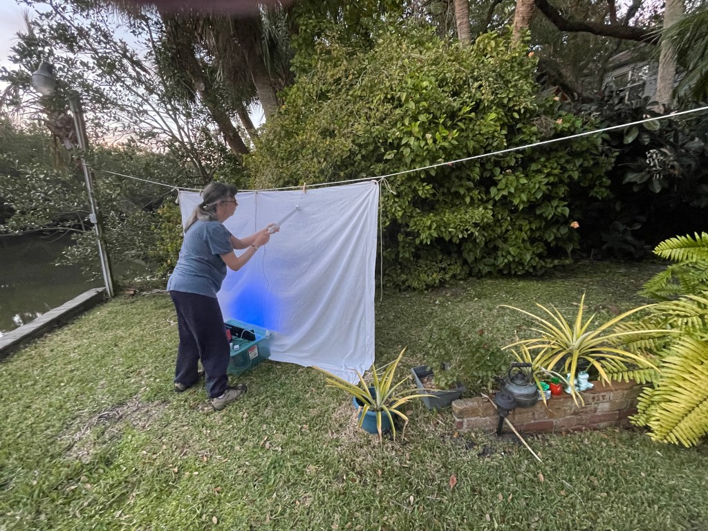 The setting sun from the patio, which means it’s time to set up the lights for nocturnal insects.
