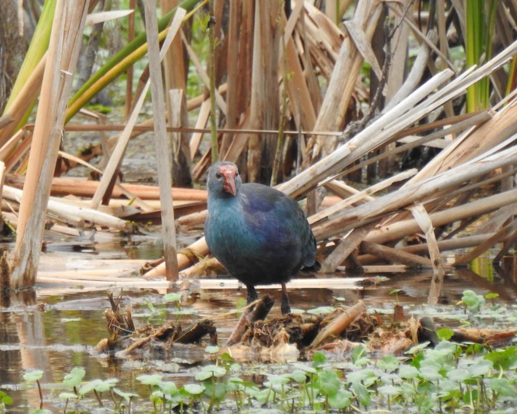 A target bird here is the Gray-headed (Purple) Swamphen. It is larger than either of the gallinules.