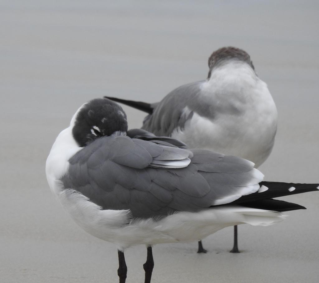 Even the Laughing Gulls were tired of the rain. Many of the gulls and terns had their bills tucked under their wings, as if to keep warm.