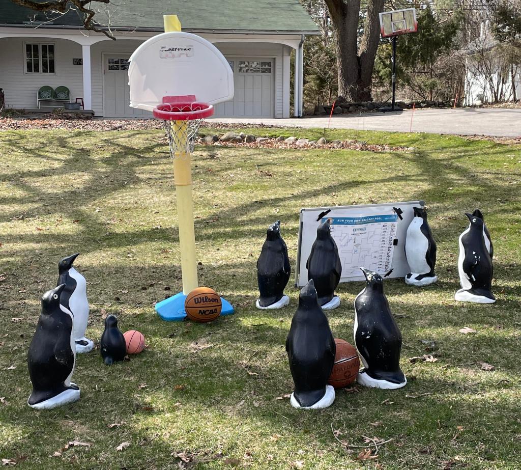There was apparently a big penguin basketball game. After the game the team was checking the brackets to see who they play next.