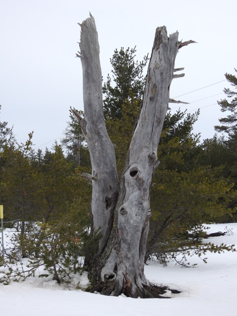 Yes, this is a dead tree. So what’s so special? Well, first it’s on our property – OK, we have lots of trees, dead and alive here. But for several years Red-breasted Mergansers nested in a hole on the other side of the tree.