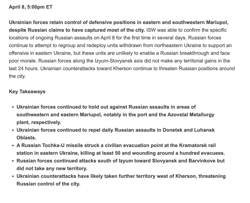 The Russian invasion of Ukraine is still a brutal was in the East and South-East Ukraine. Civilian deaths are rising and Russian forces seem to be regrouping in Belarus and Russia with plans of reinforcing troops in the East.