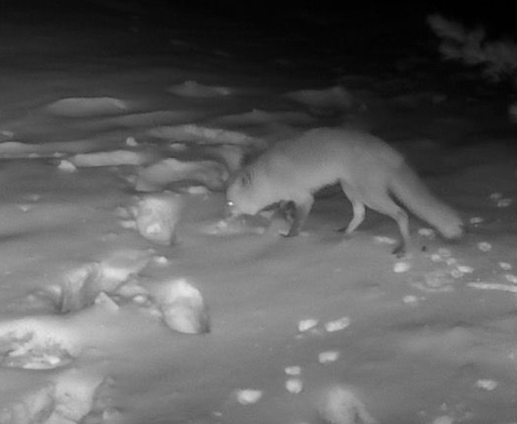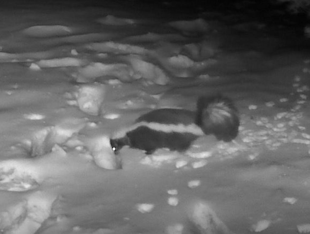 Our feeders are not only active during the day, but also at night. Our new trail-cam captured both a red fox and striped skunk checking out whats to eat.