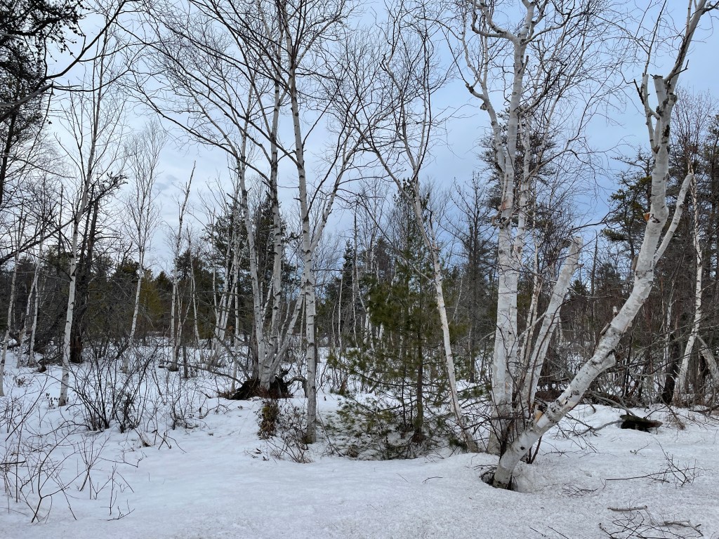 While I always think of Whitefish Point as being mostly pines, this patch of paper birch is between us and the point.