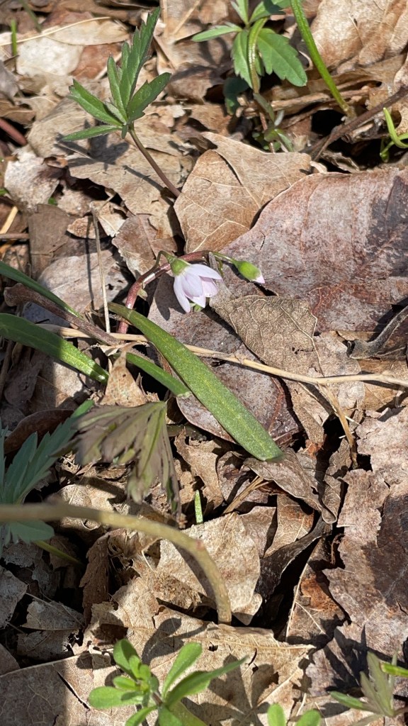 Southern (Virginia) spring beauty is flowering in the sunnier spots, while only showing buds in the woods.
