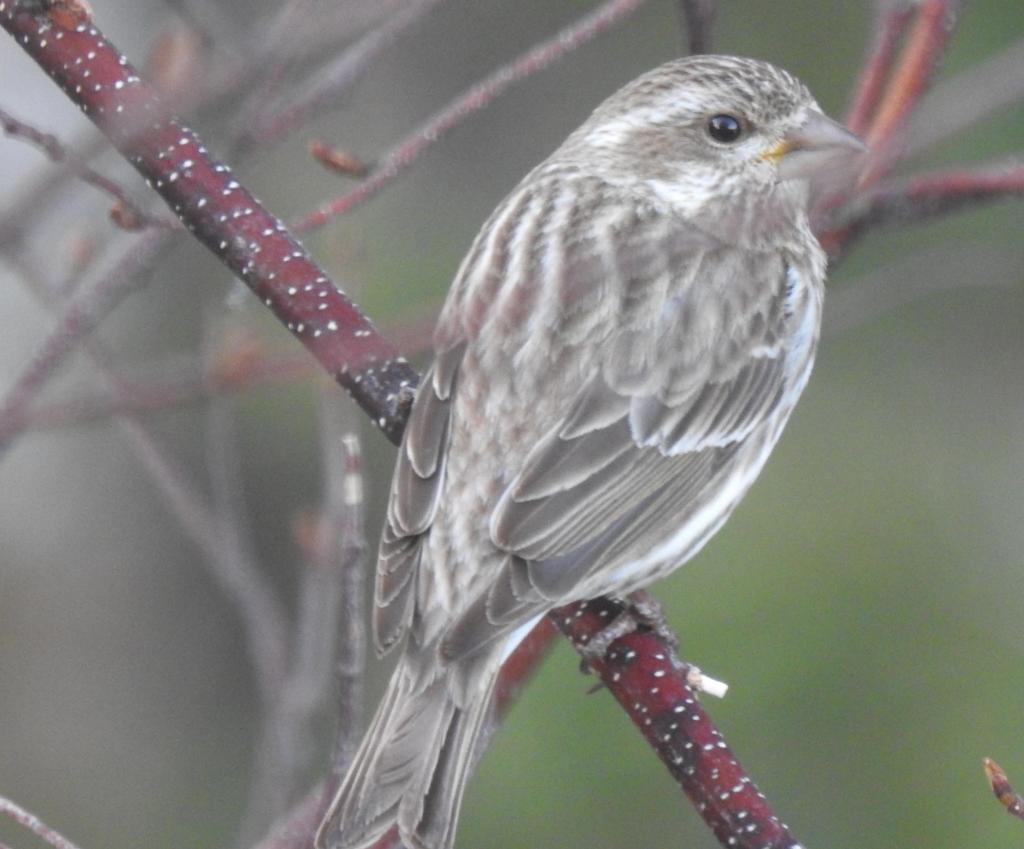 At the feeders there were Common Redpolls (he bird on the right) and our first Purple Finch female of the year. It was obvious that something good was going to come of the day.