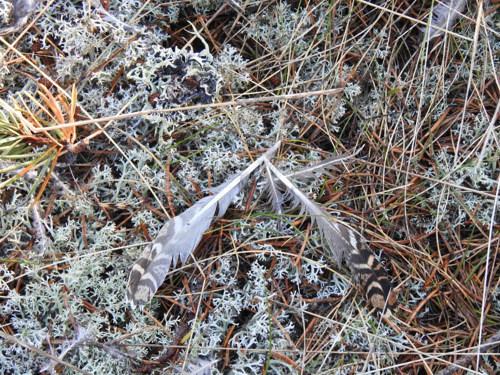 On my morning walk I found the remains of a Ruffed Grouse, Since we live under a raptor migratory flyway it is not uncommon to find feather piles.