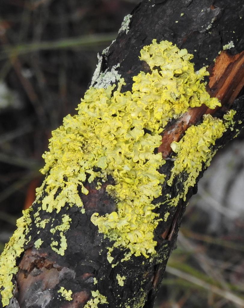 On overcast days with little migration happening it’s nice to go out and look at lichens. The photo on the left has at least five different lichens in it. The right-hand photo it dominated by a single species. All of these are waiting for identification since by major reference book is in Ann Arbor.