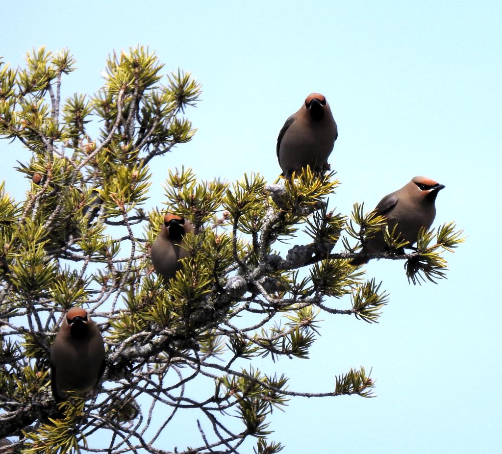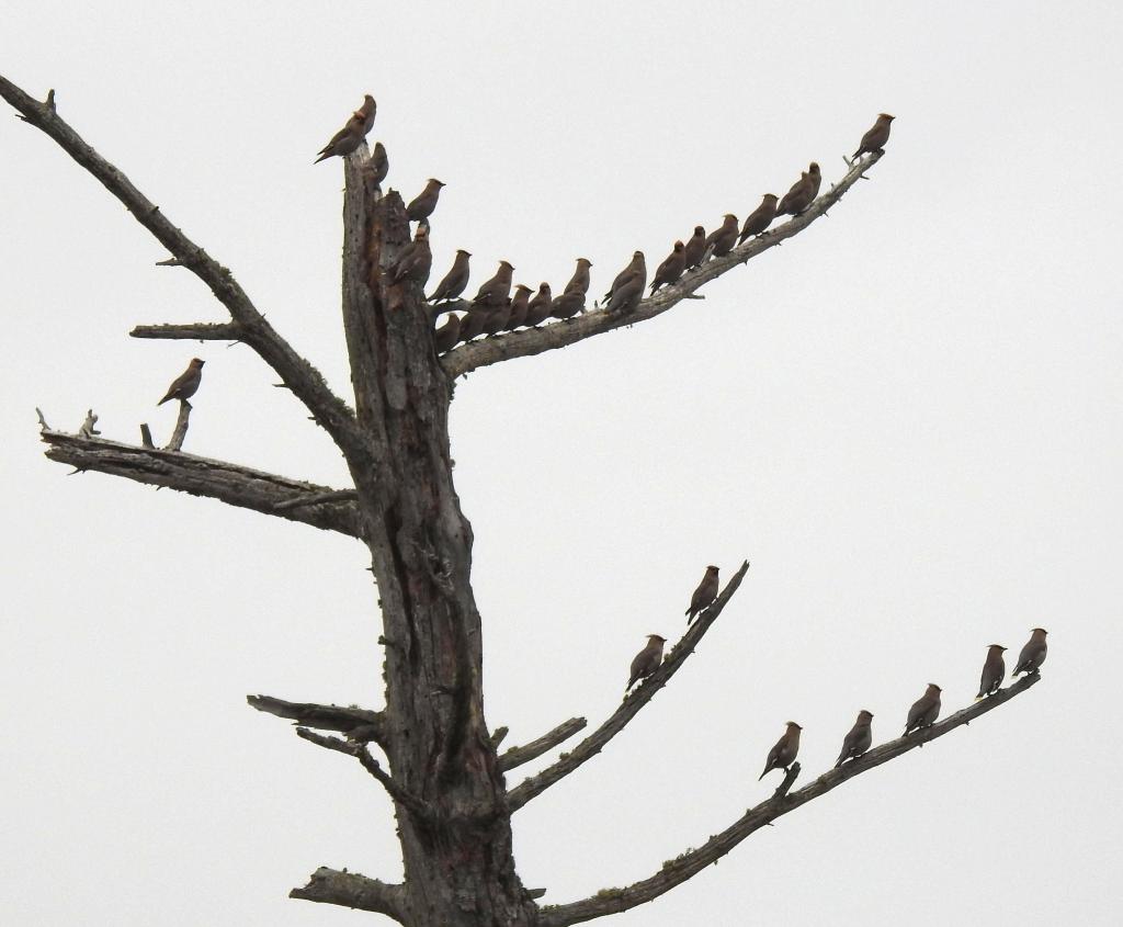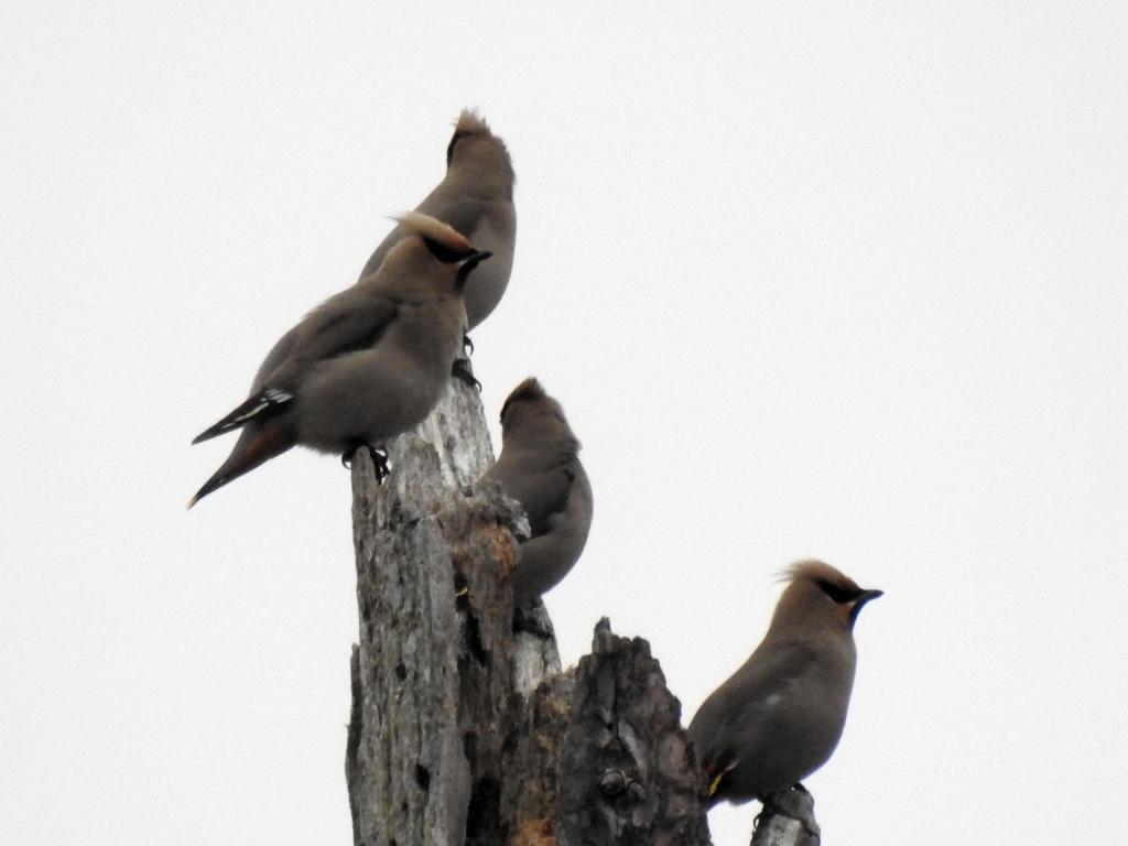 Bohemian Waxwings that were closer yesterday when it was sunny.