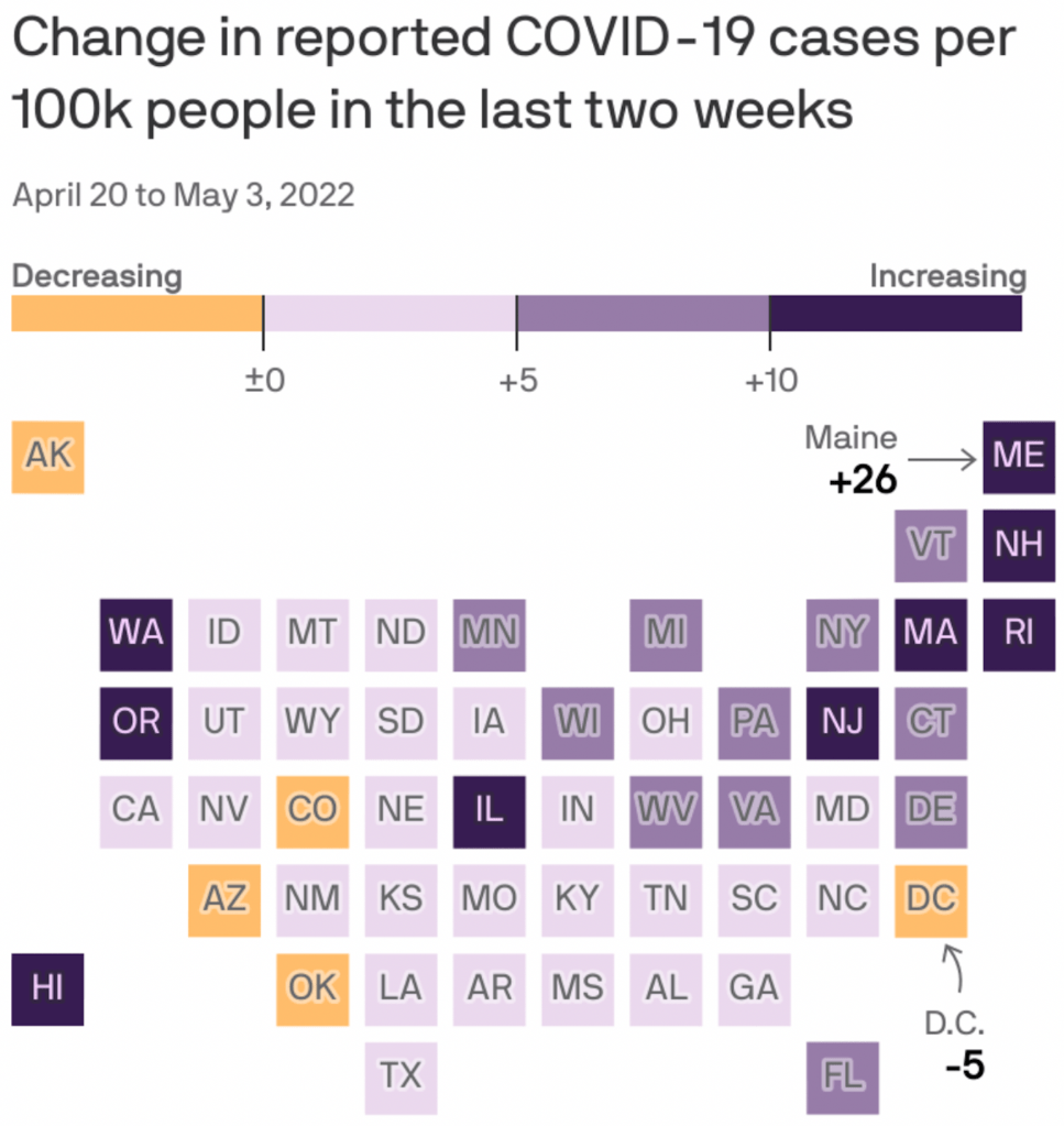 I’m not a fan of cases/deaths per 100,000 people, as the people involved are not a statistic. That aside it’s clear that SARS-CoV-2 Omicron B2.12.1 is on the rise.